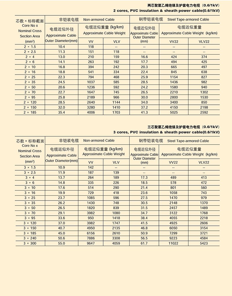 0.6/1KV聚氯乙烯絕緣電力電纜的產(chǎn)品詳細(xì)介紹: