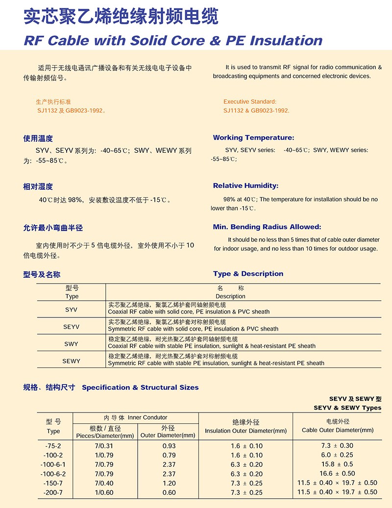 實芯聚乙烯絕緣射頻電纜的產(chǎn)品詳細(xì)介紹: