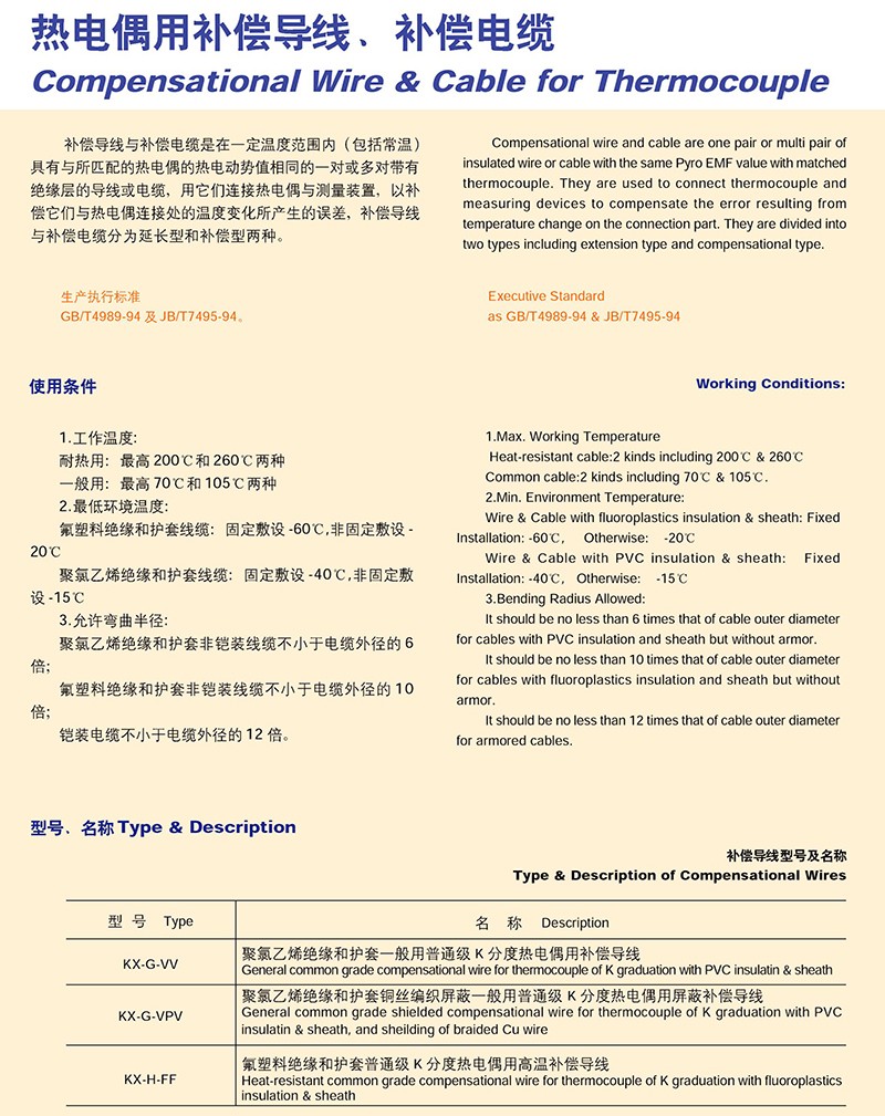 熱電偶用補(bǔ)償導(dǎo)線、補(bǔ)償電纜的產(chǎn)品詳細(xì)介紹: