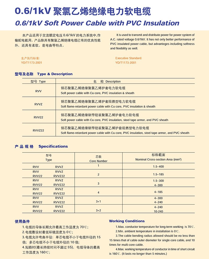 0.6/1KV聚氯乙烯絕緣電力軟電纜的產(chǎn)品詳細介紹: